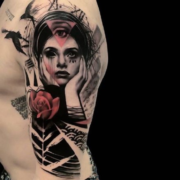女性肩部肖像刺青_肖像纹身图案大全_纹身图吧