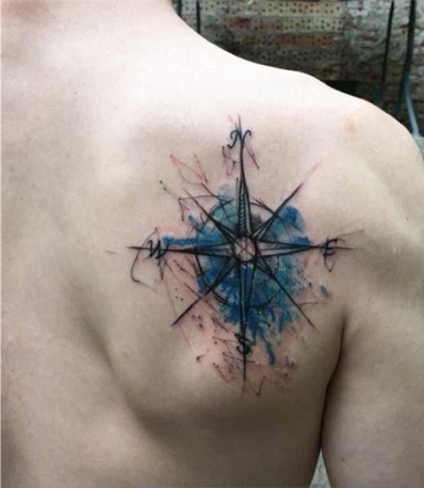 纹身指南针 水彩与线条结合的指南针纹身图案