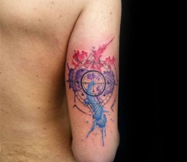纹身指南针 水彩与线条结合的指南针纹身图案