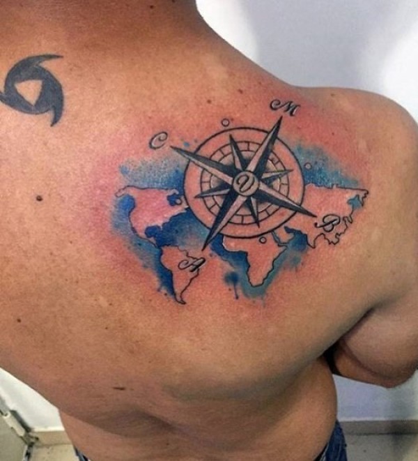 纹身指南针 水彩与线条结合的指南针纹身图案