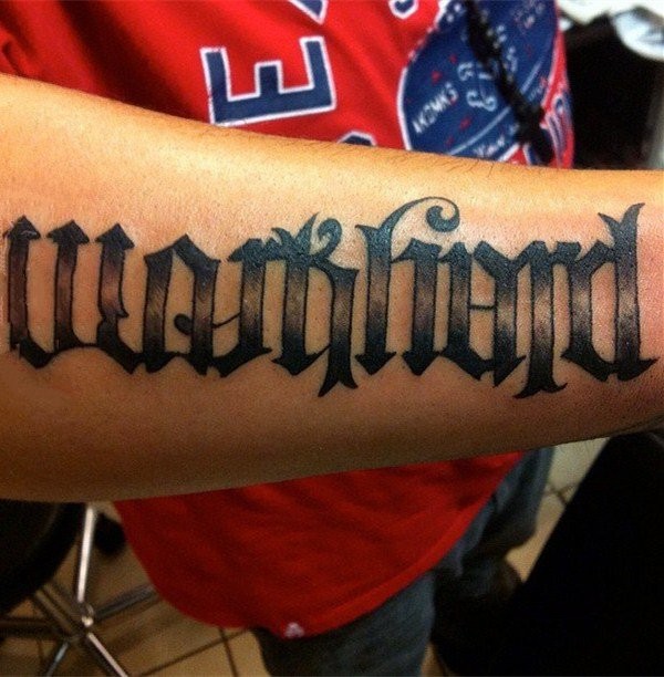 小臂花体英文纹身 设计感十足的花体英文纹身图案