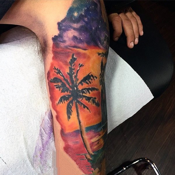 棕榈树纹身图案 根深叶茂的棕榈树纹身图案