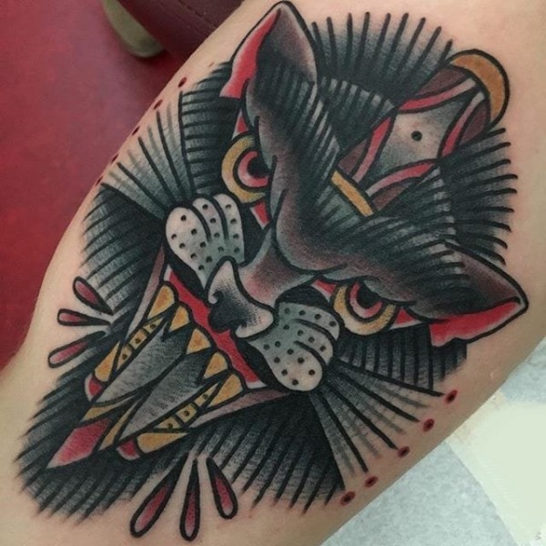 传统纹身 彩色的传统纹身动物和花朵和英文纹身图案