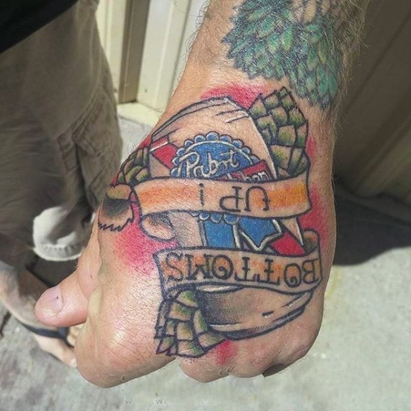 创意情侣纹身 手臂上彩色的啤酒瓶创意情侣纹身图案