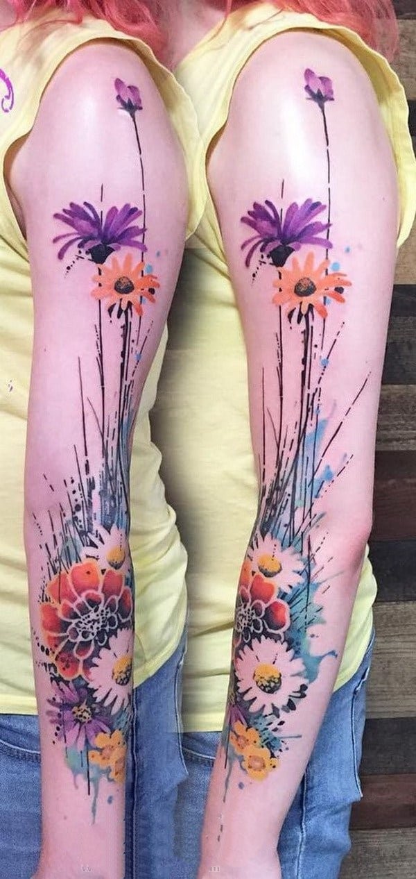 水彩泼墨纹身 手臂上水彩泼墨纹身几何纹身图案