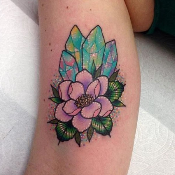 水晶纹身 彩色的水晶纹身钻石和花朵创意纹身图案