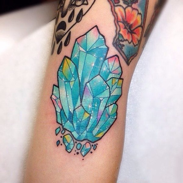 水晶纹身 彩色的水晶纹身钻石和花朵创意纹身图案