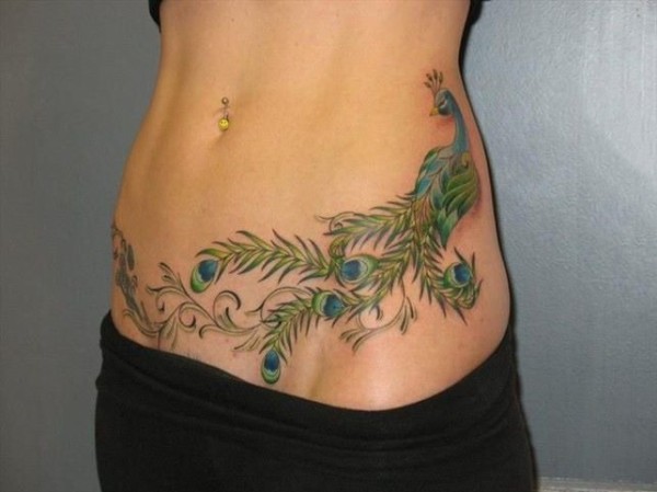 女孩子们性感腹部上漂亮的纹身图案