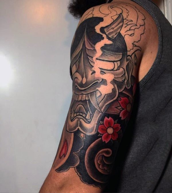 日本鬼面具纹身 面容恐怖的日本鬼面具纹身图案
