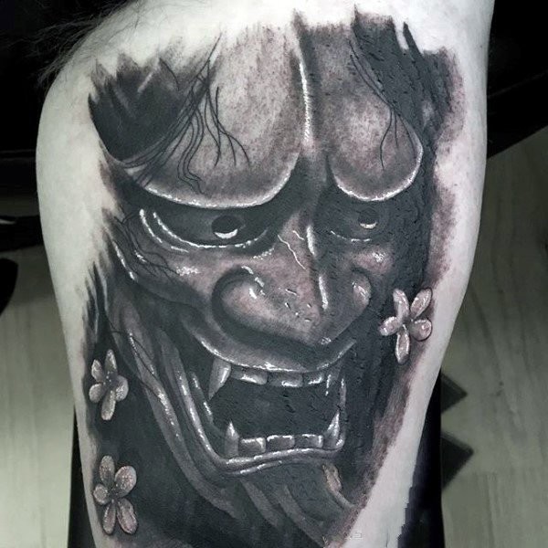 日本鬼面具纹身 面容恐怖的日本鬼面具纹身图案