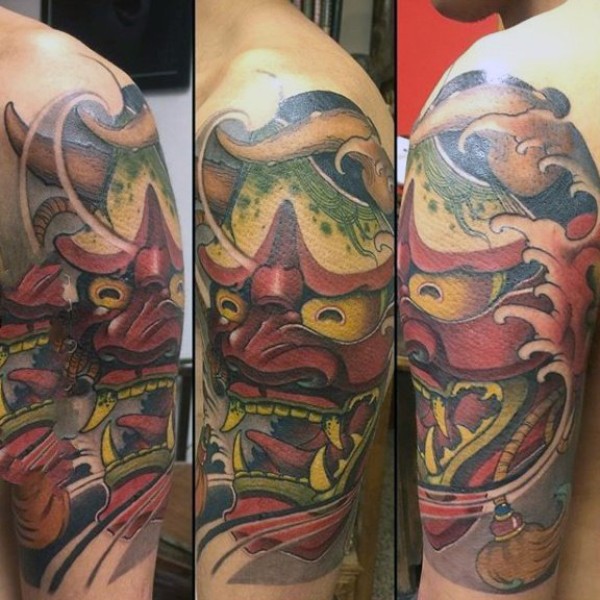 日本鬼面具纹身 面容恐怖的日本鬼面具纹身图案