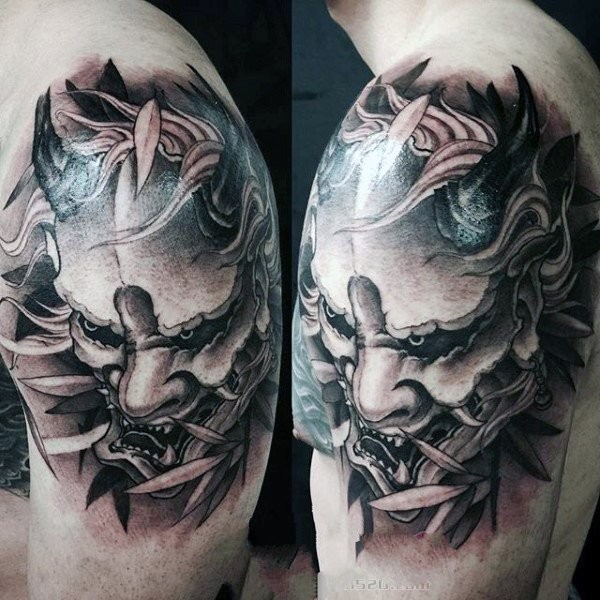 日本鬼面具纹身 面容恐怖的日本鬼面具纹身图案
