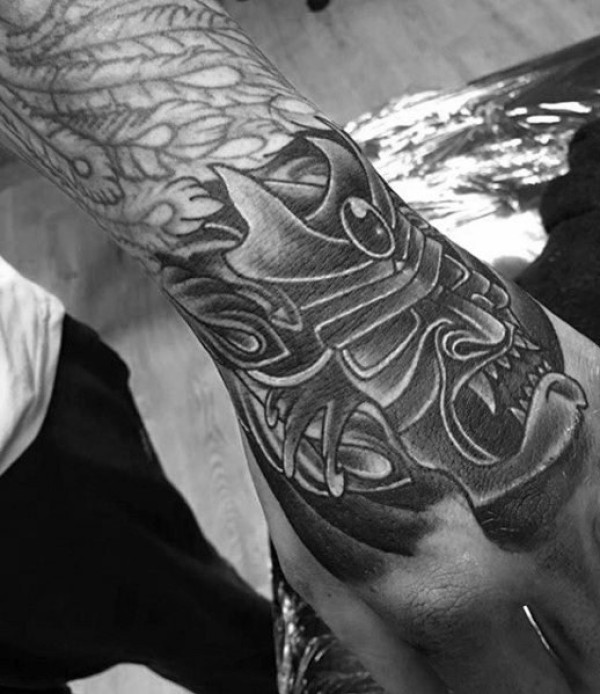 日本武士面具纹身 面容凶狠的日本武士纹身图案
