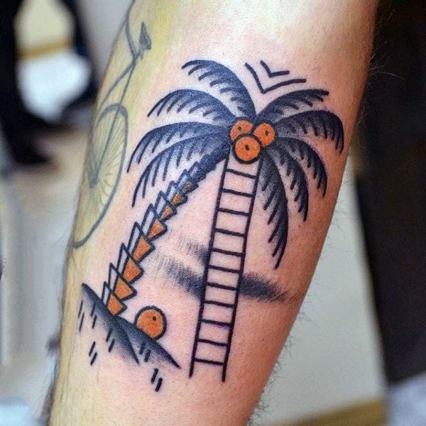 棕榈树纹身图案 绿树成荫的棕榈树纹身图案
