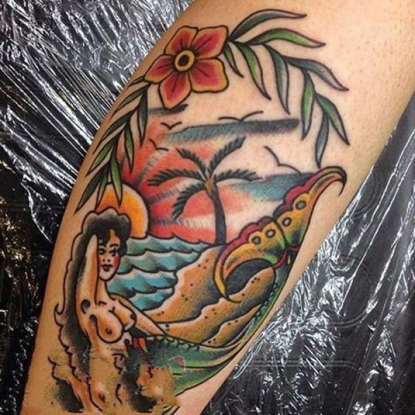 棕榈树纹身图案 绿树成荫的棕榈树纹身图案
