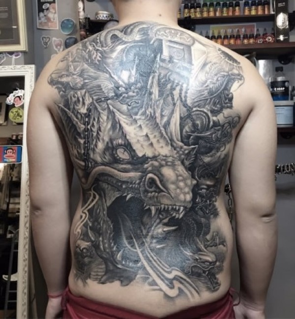 日式手彫刺青作品—半甲龙很感谢客户认可手彫刺青,手彫是日本纹身的手工雕刻技术,时间可以追溯到日本17世纪的江户时代。19世纪,手彫技术被日本黑帮挪用,被用作入会仪式,象征着从此就是江湖中人。在日式传统