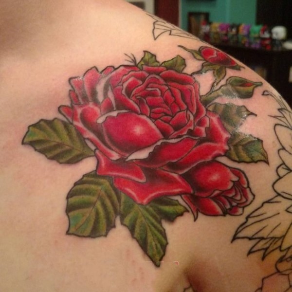 欧美玫瑰纹身 男生手臂上花朵纹身图片