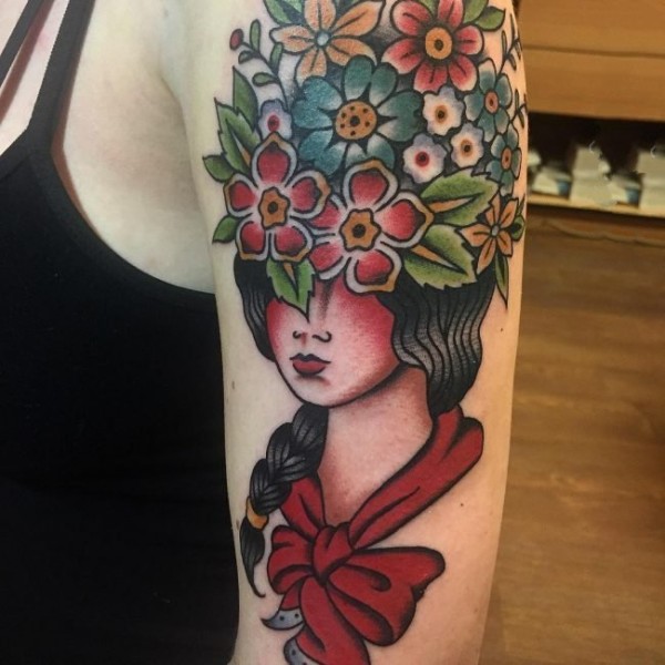 花朵纹身图案-20张身体各个部位传统彩绘纹身图案