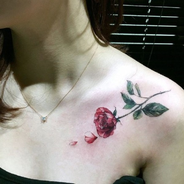 锁骨刺青:纹在女生锁骨处的小清新纹身图案9张