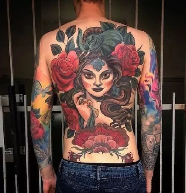 女性大满背纹身--9张女生霸气的大满背纹身作品图案欣赏
