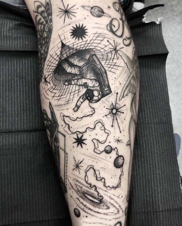 一组腿部优秀的黑灰点刺纹身作品欣赏