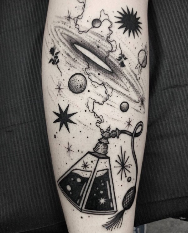 一组腿部优秀的黑灰点刺纹身作品欣赏