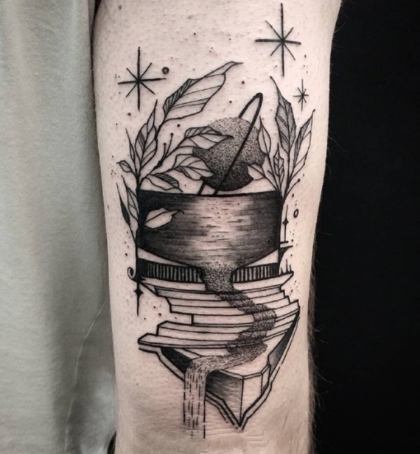 一组腿部优秀的黑灰点刺纹身作品欣赏