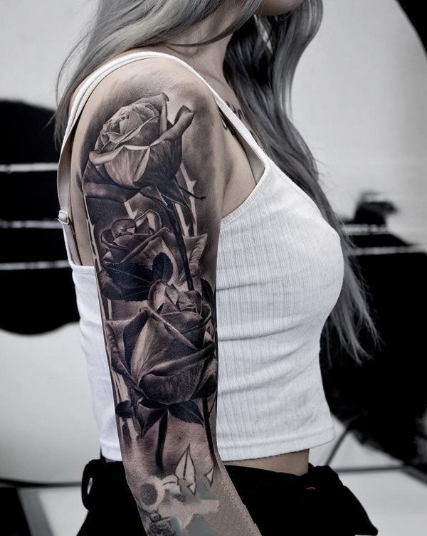 纹身唯美图片 花枝招展的玫瑰纹身图案