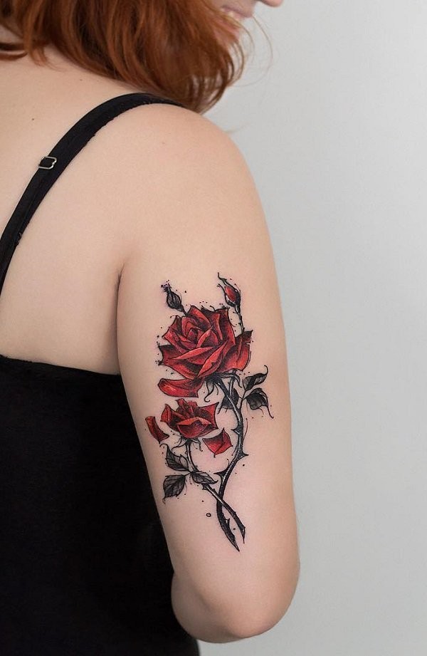 玫瑰纹身图 娇艳欲滴的玫瑰花纹身图案
