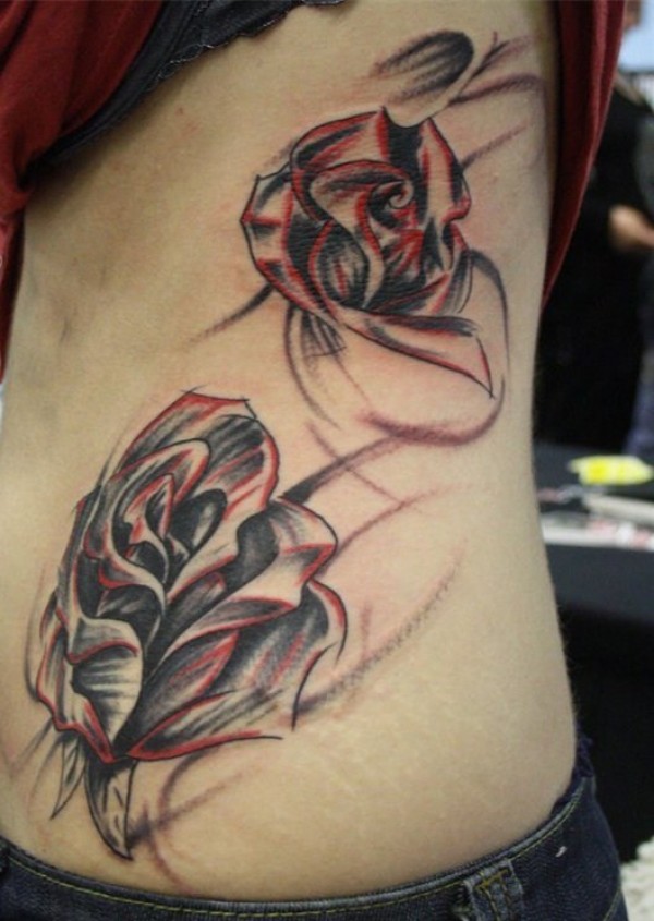 玫瑰纹身图 娇艳欲滴的玫瑰花纹身图案