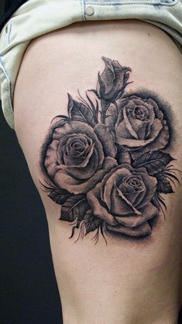 纹身唯美图片 花枝招展的玫瑰纹身图案