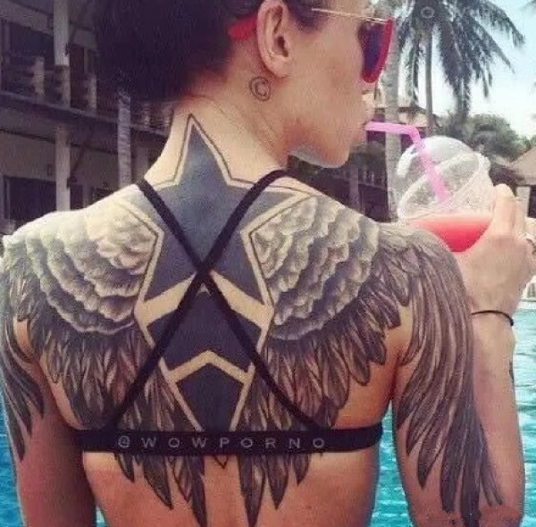 时尚的背部翅膀纹身图案_翅膀纹身图案大全_纹身图吧