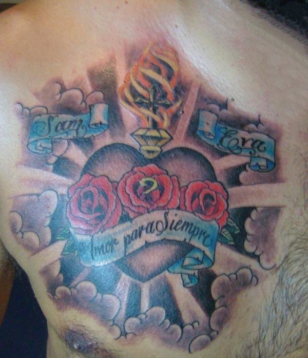女生锁骨下黑灰素描点刺技巧创意比心纹身图片