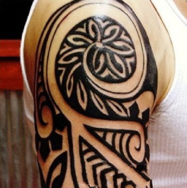 男性超帅气的黑色半甲部落图腾纹身图案