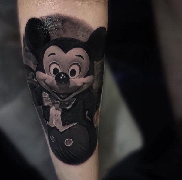 一套欧美动画片角色写实黑灰手臂纹身作品
