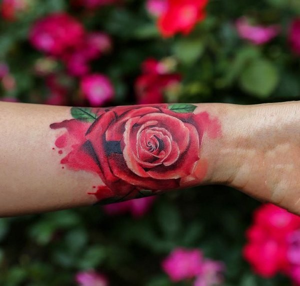玫瑰纹身图 美艳欲滴的玫瑰花纹身图案