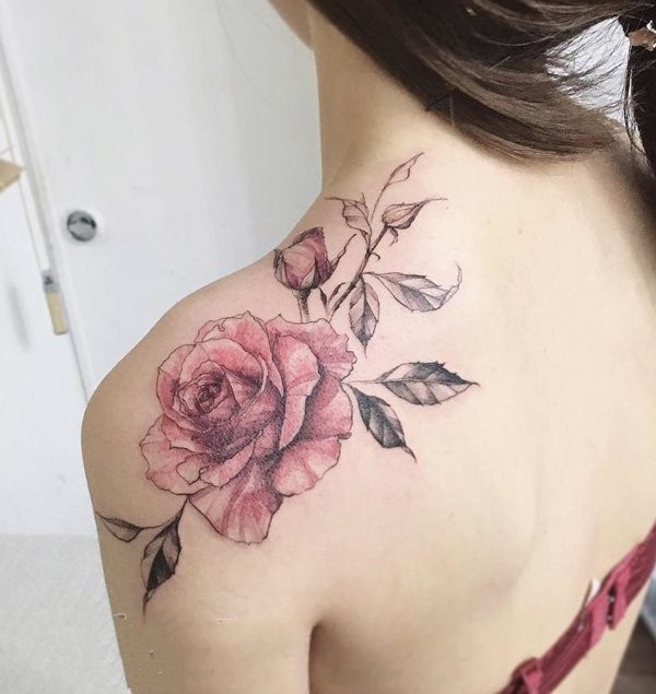 女性肩膀上多款漂亮的花朵纹身图案