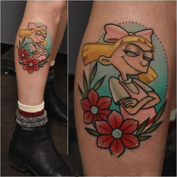 复古卡通红唇美女手臂纹身_卡通纹身图案大全_纹身图吧