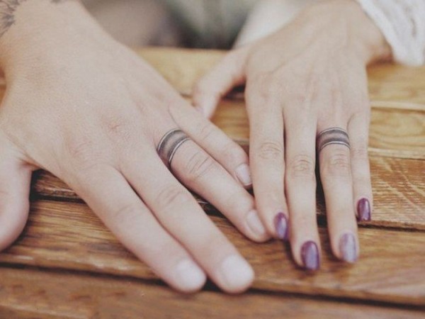 情侣戒指纹身 清新小巧的情侣戒指纹身图案