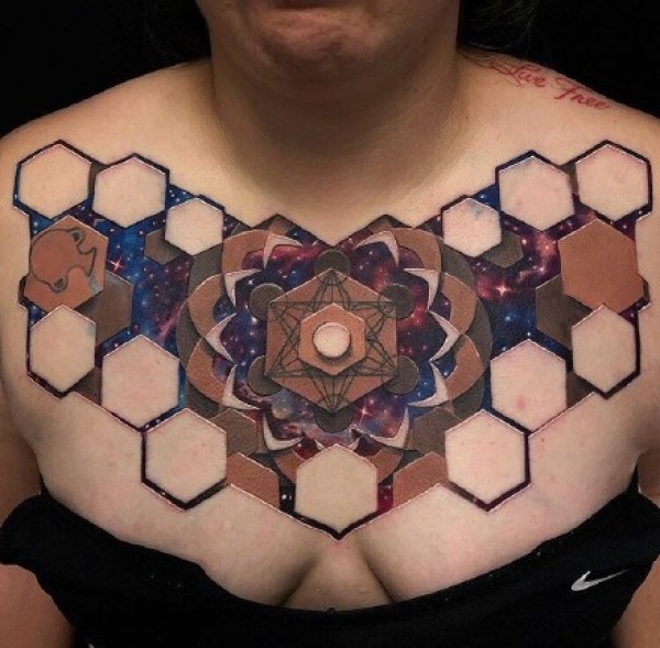9张男性胸部逼真的3d立体个性纹身图案