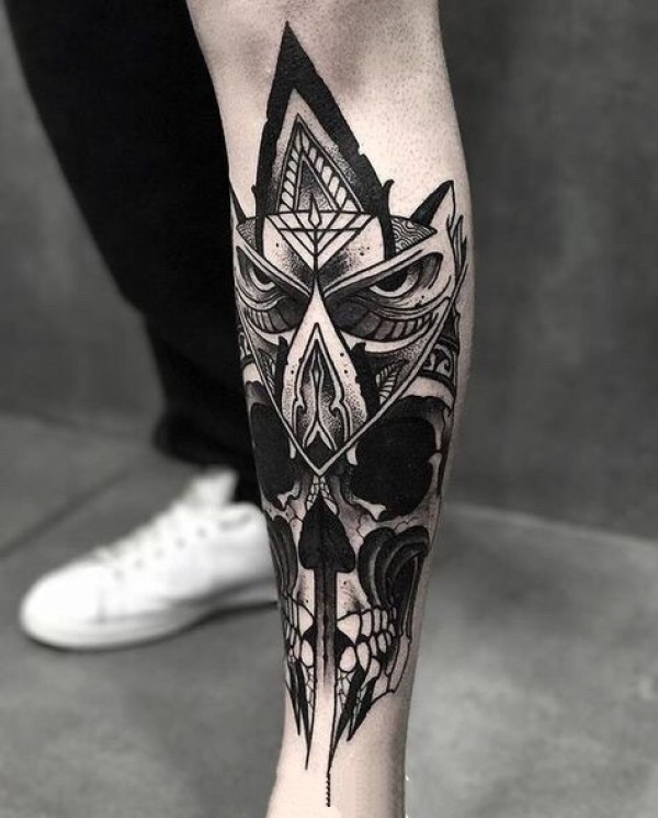 一组适合小腿和手臂的黑灰点刺纹身图案作品欣赏