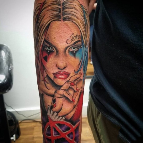 女生人物纹身图案 反叛的人物肖像小丑女纹身图案