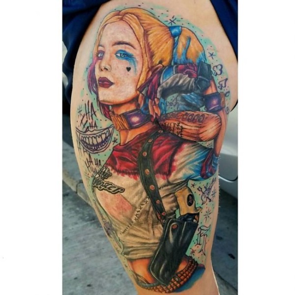 女生人物纹身图案 反叛的人物肖像小丑女纹身图案