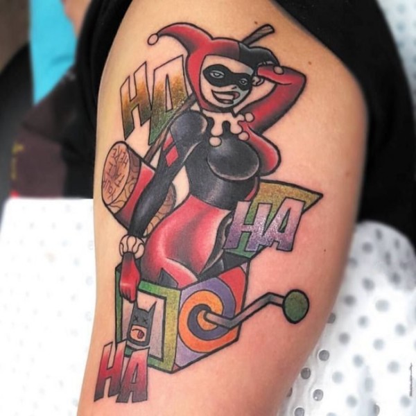 女生人物纹身图案 反叛的人物肖像小丑女纹身图案