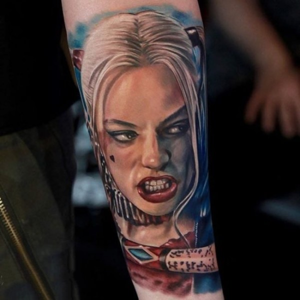 女生人物纹身图案 反叛的人物肖像小丑女纹身图案