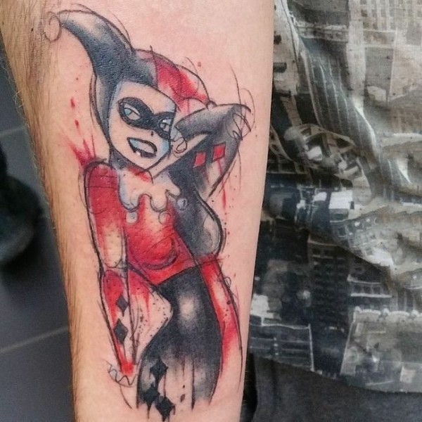 女生人物纹身图案 反叛的人物肖像小丑女纹身图案