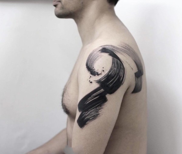 男性超简约水墨纹身图案