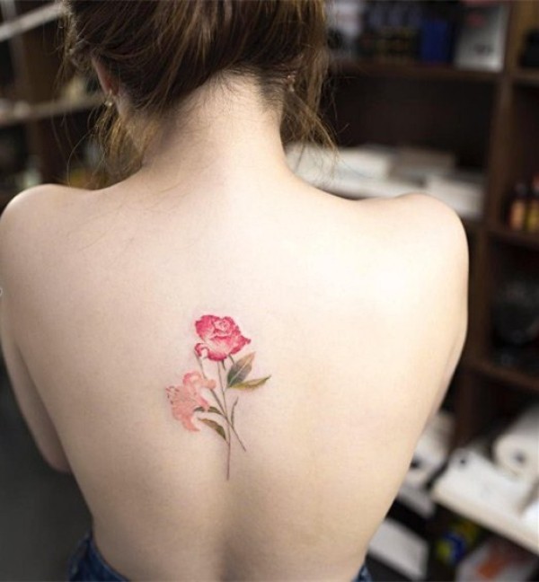 女生肩花纹身_15张女性双肩对称的肩花纹身图案作品图片