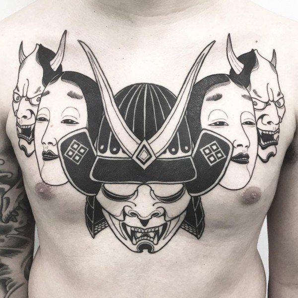 能面万媚纹身手稿_52张日式能剧面具纹身手稿图案素材欣赏