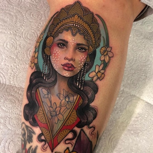 女生人物纹身图案 女生小腿上女生人物纹身图案